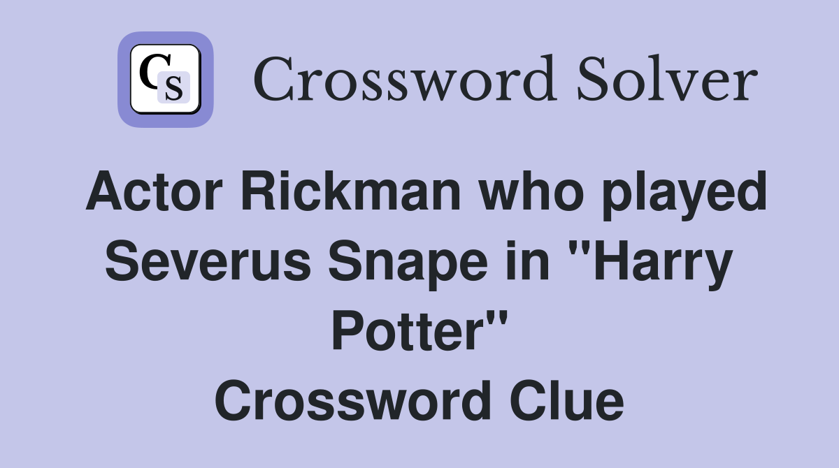 Actor Rickman who played Severus Snape in quot Harry Potter quot Crossword