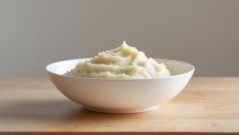 Creamy Mashed Potato Serving in a Simple White Bowl on Table Stock