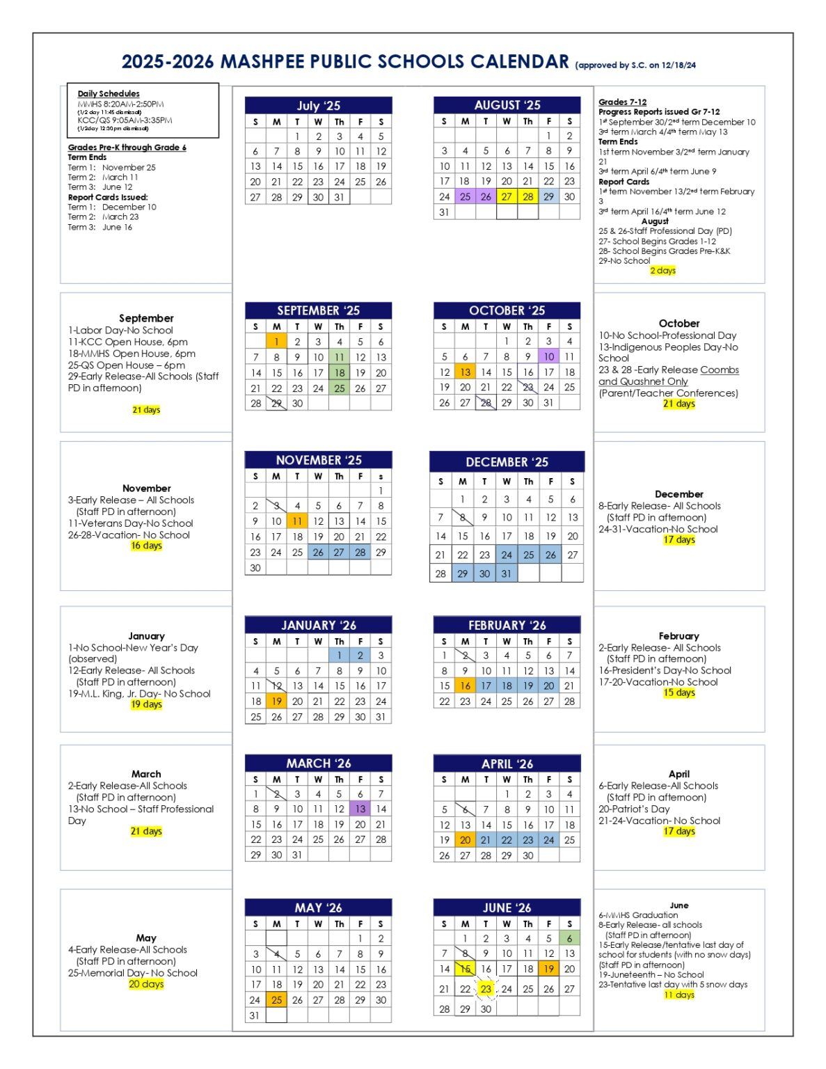 Mashpee Public Schools Calendar 2026 Schoolcalendars net