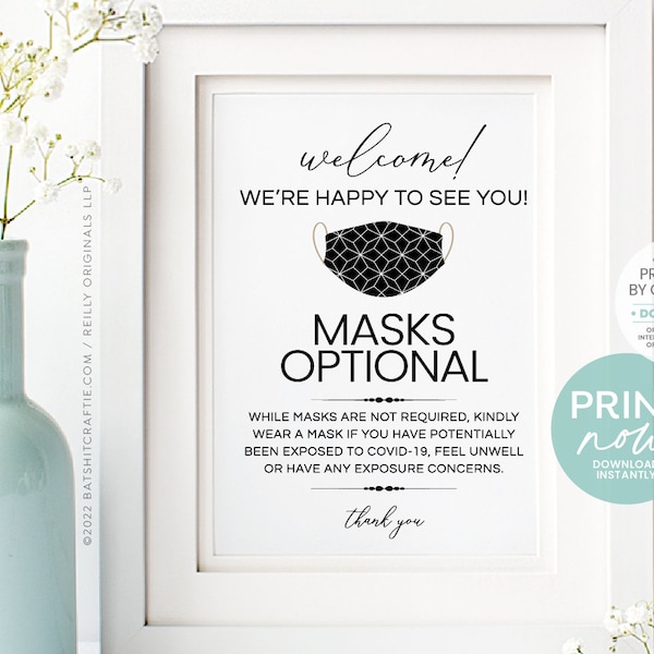 Face Masks Optional Sign Printable Instant Digital Download Face Masks