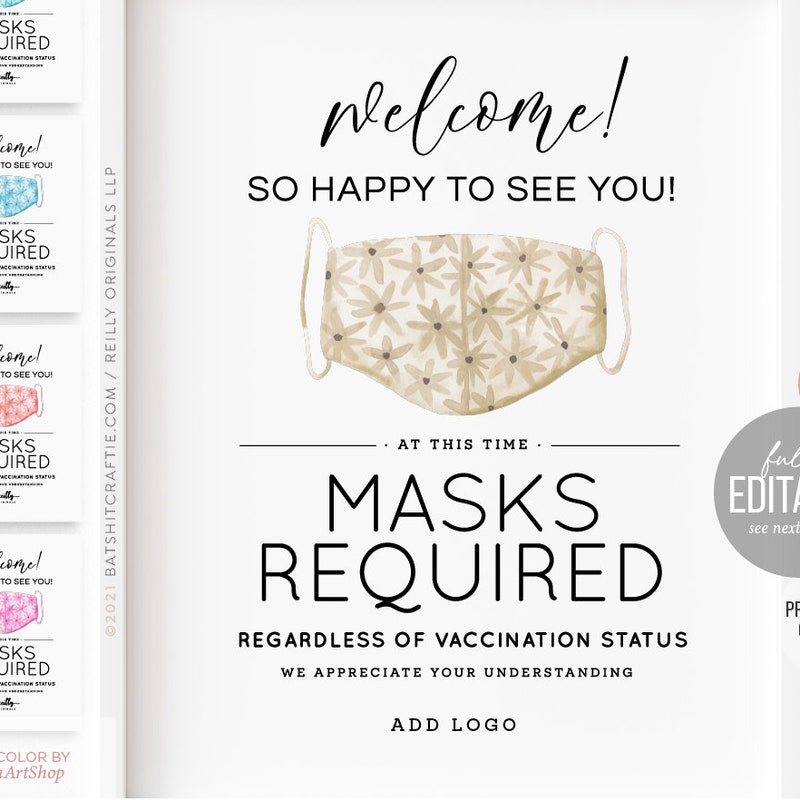 Face Mask Sign PRINTABLE Face Masks Optional If Vaccinated Etsy