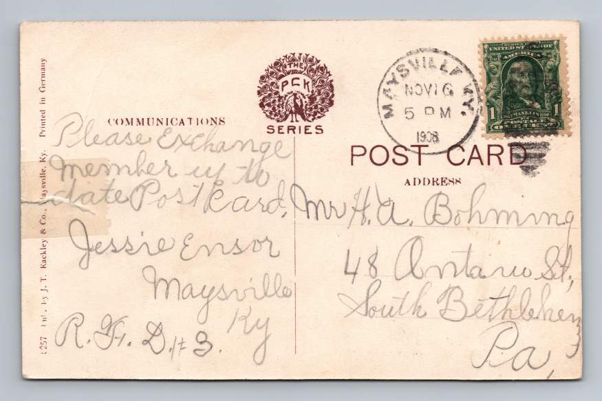 Mason County Court House MAYSVILLE Kentucky Antique PCK Postcard Cover
