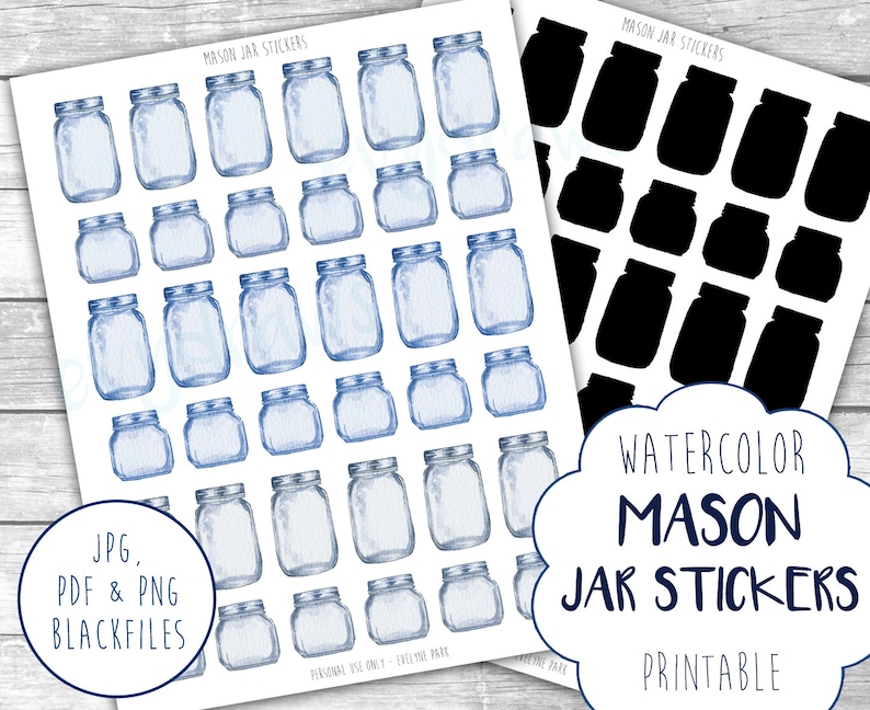 Mason Jar Stickers Printable Watercolor Mason Jars Sticker Etsy