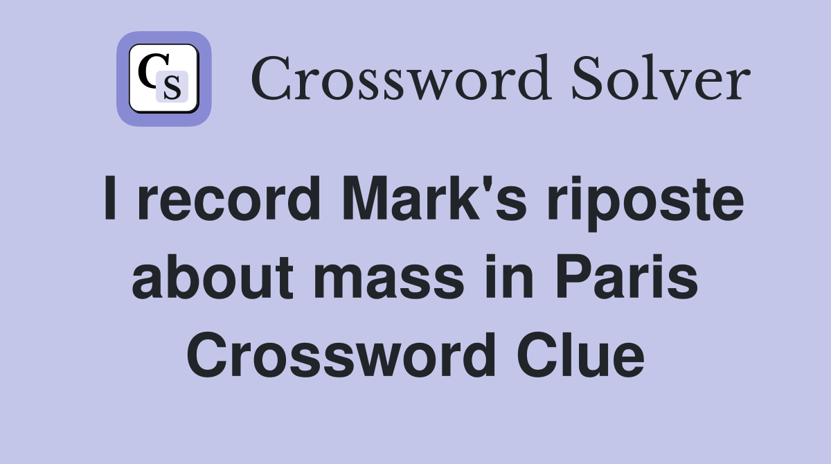 I record Mark #39 s riposte about mass in Paris Crossword Clue Answers