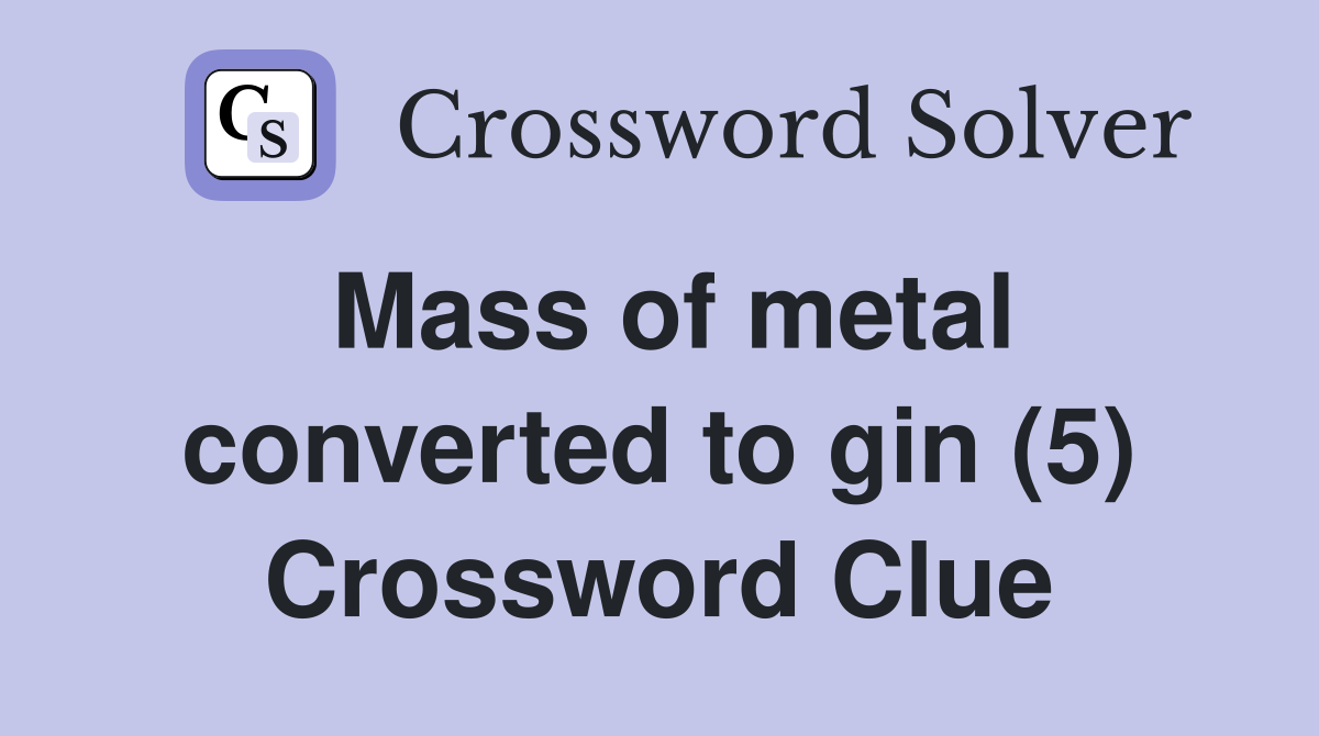 Mass of metal converted to gin (5) Crossword Clue Answers Crossword