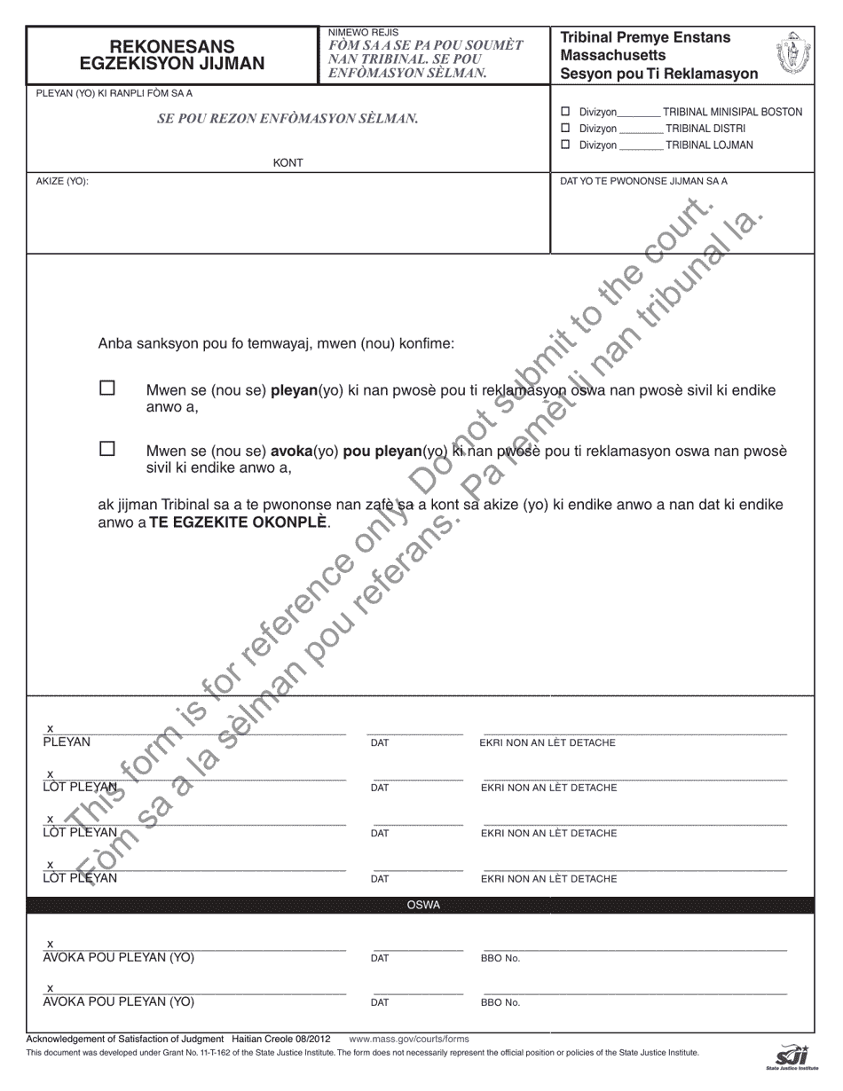 Massachusetts Acknowledgment of Satisfaction of Judgment (Haitian