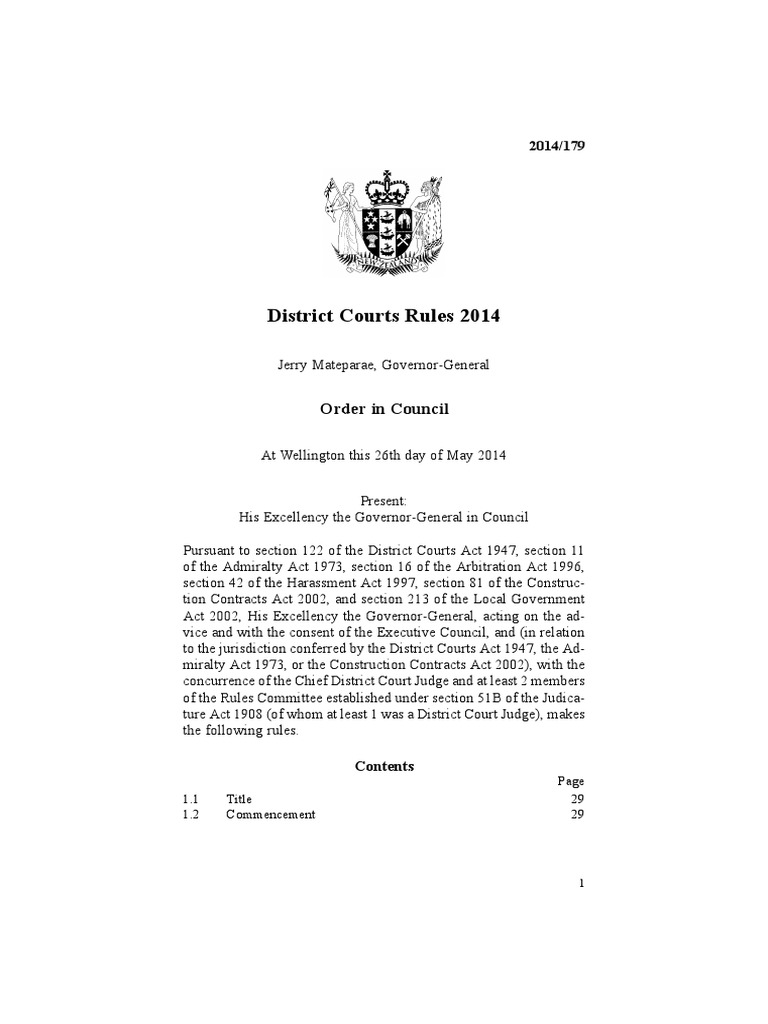 District Courts Rules 2014: Order in Council PDF Costs In English
