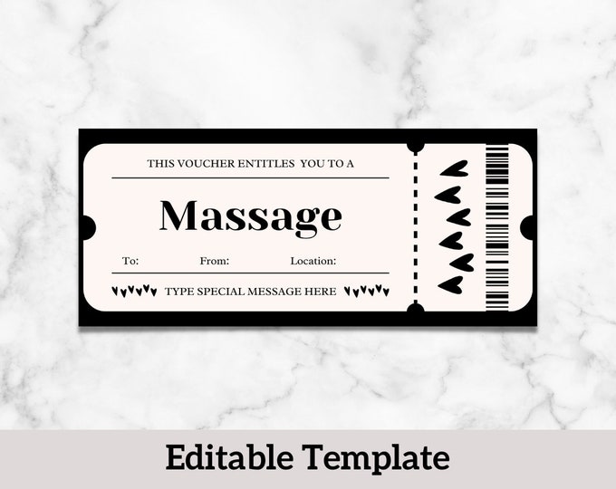 Massage Gift Certificate Editable Template Personalized Massage Gift