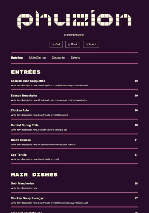 Free Spa Menu Template to Edit Online