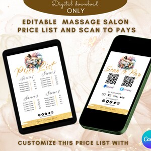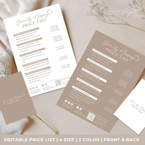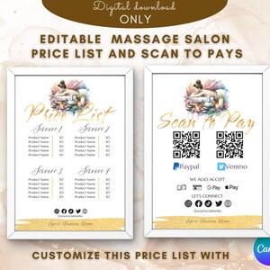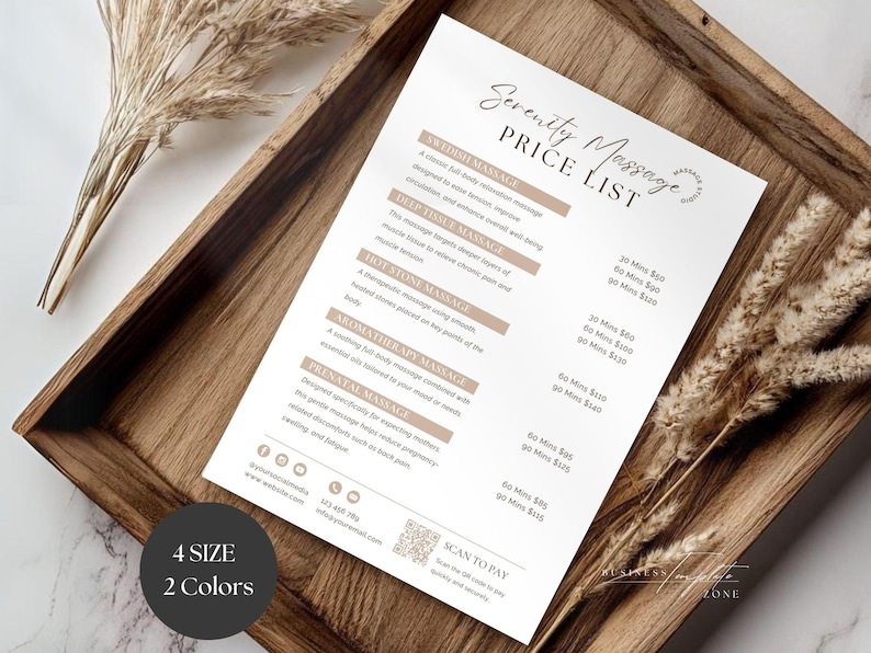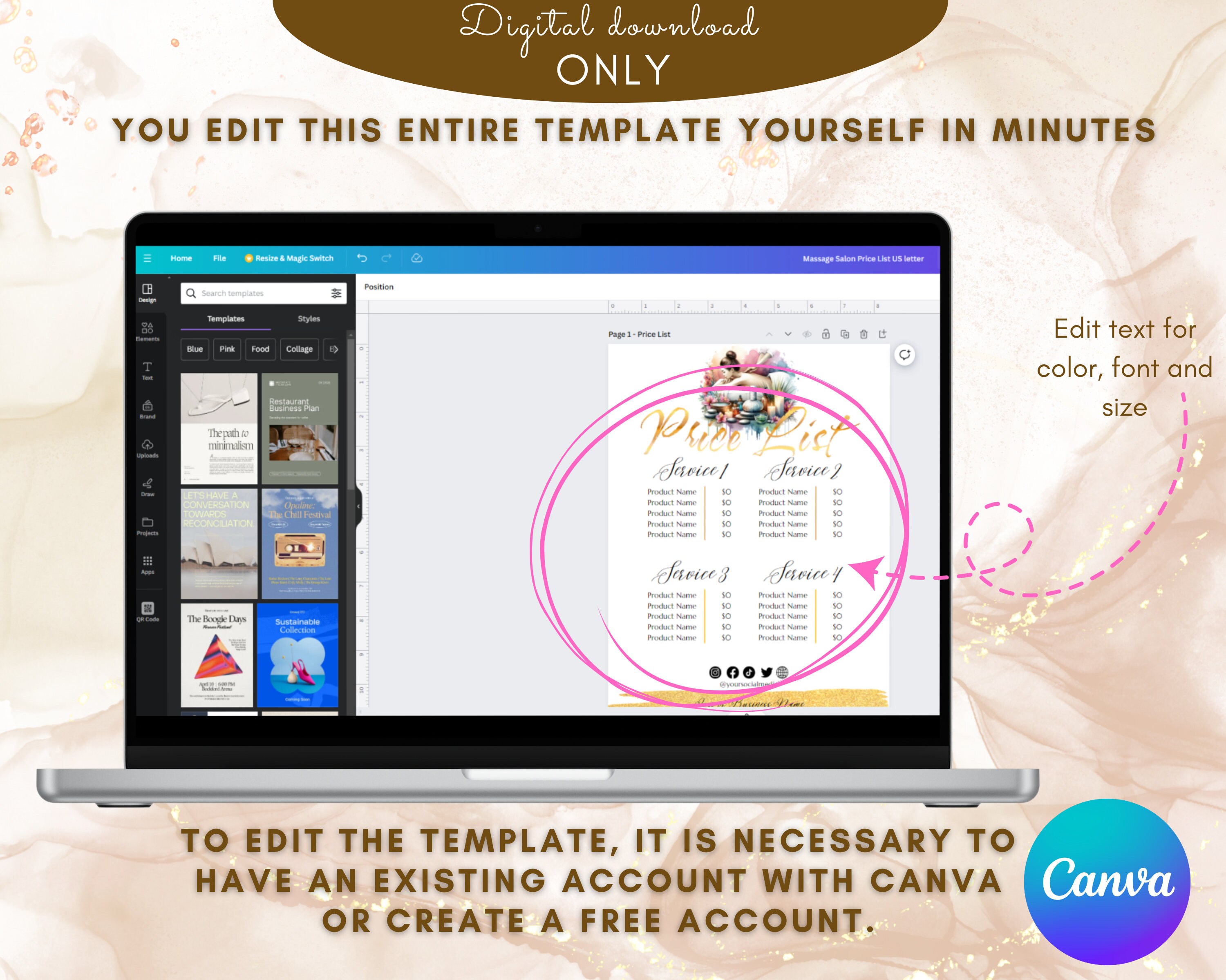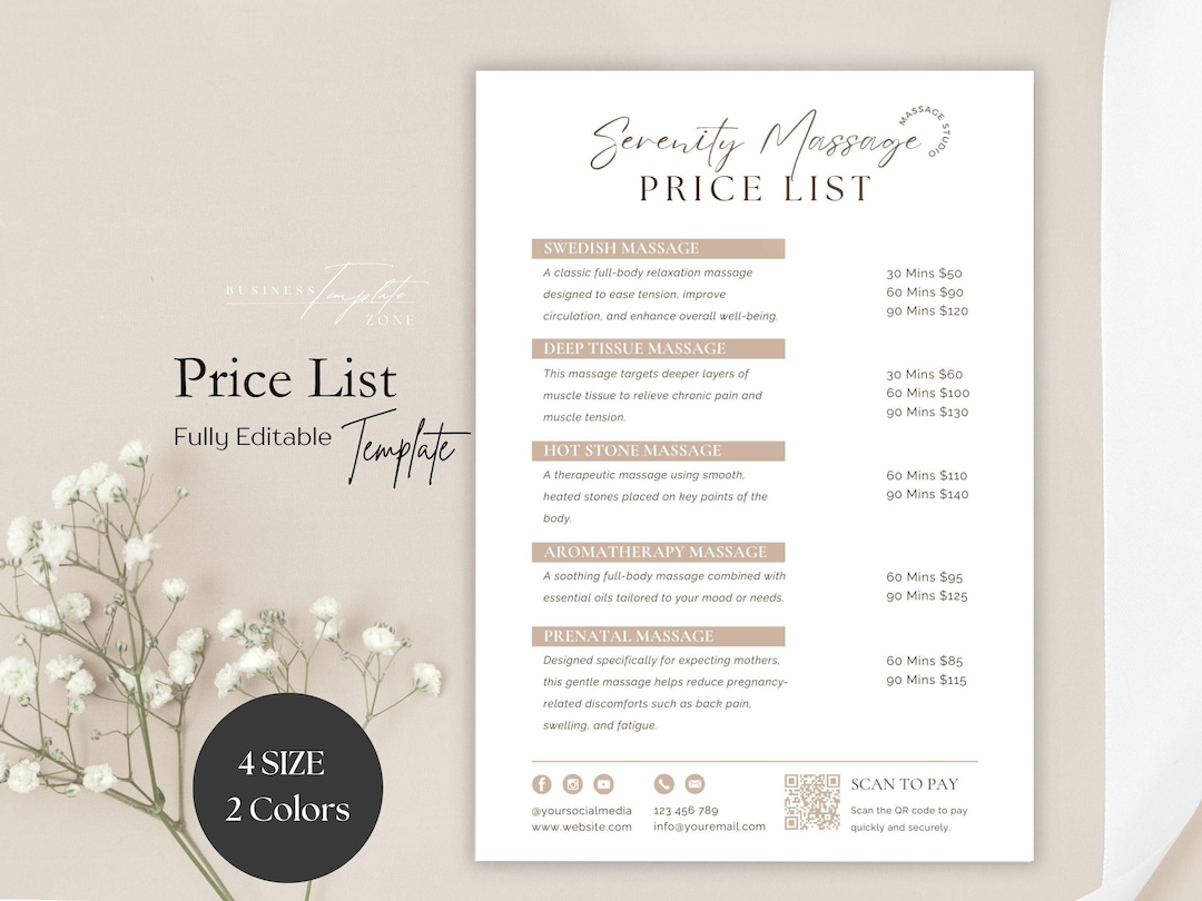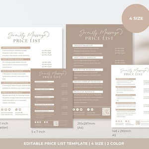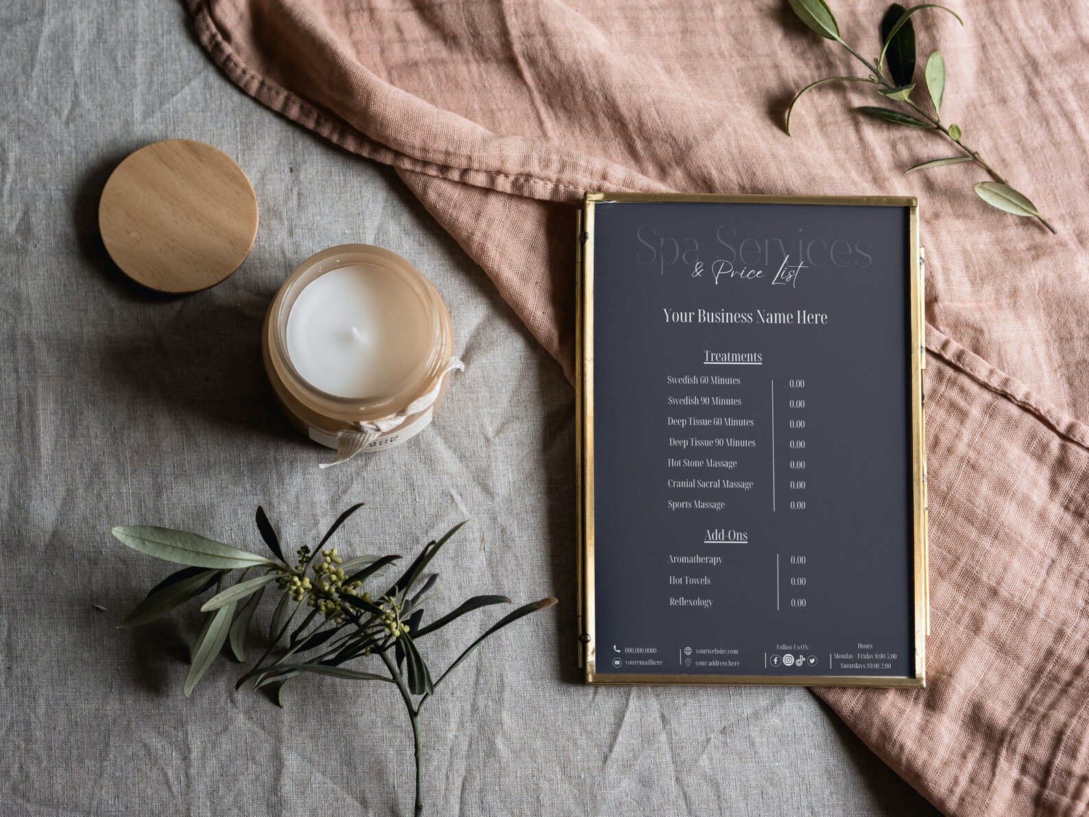 Massage Price List Template I Spa Price List Template I Printable Bogiolo