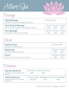 Massage Price List Template Spa Massage Salon Service Menu with Price