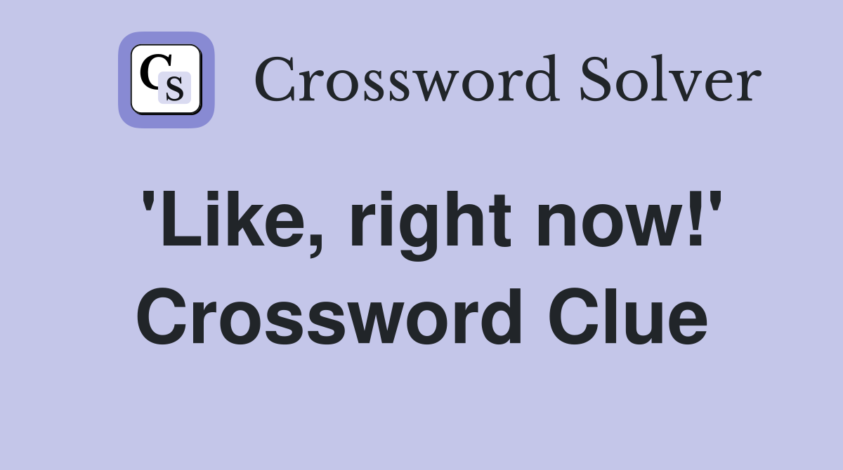 #39 Like right now #39 Crossword Clue Answers Crossword Solver