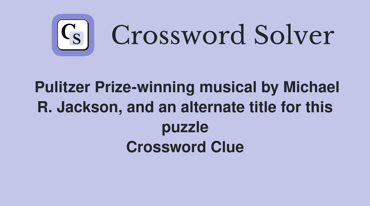 Pulitzer Prize winning musical by Michael R Jackson and an alternate