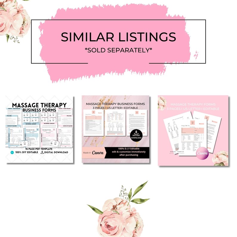 Massage Therapy Intake Form Massage Therapy Consent Form DIY Etsy