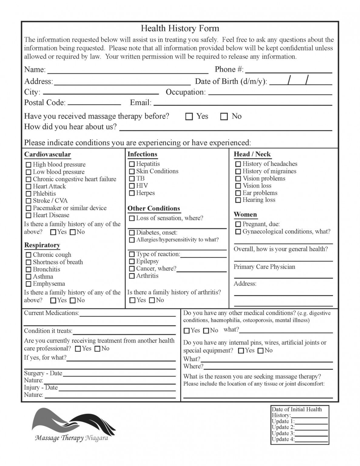Massage Therapy Intake Form Printable