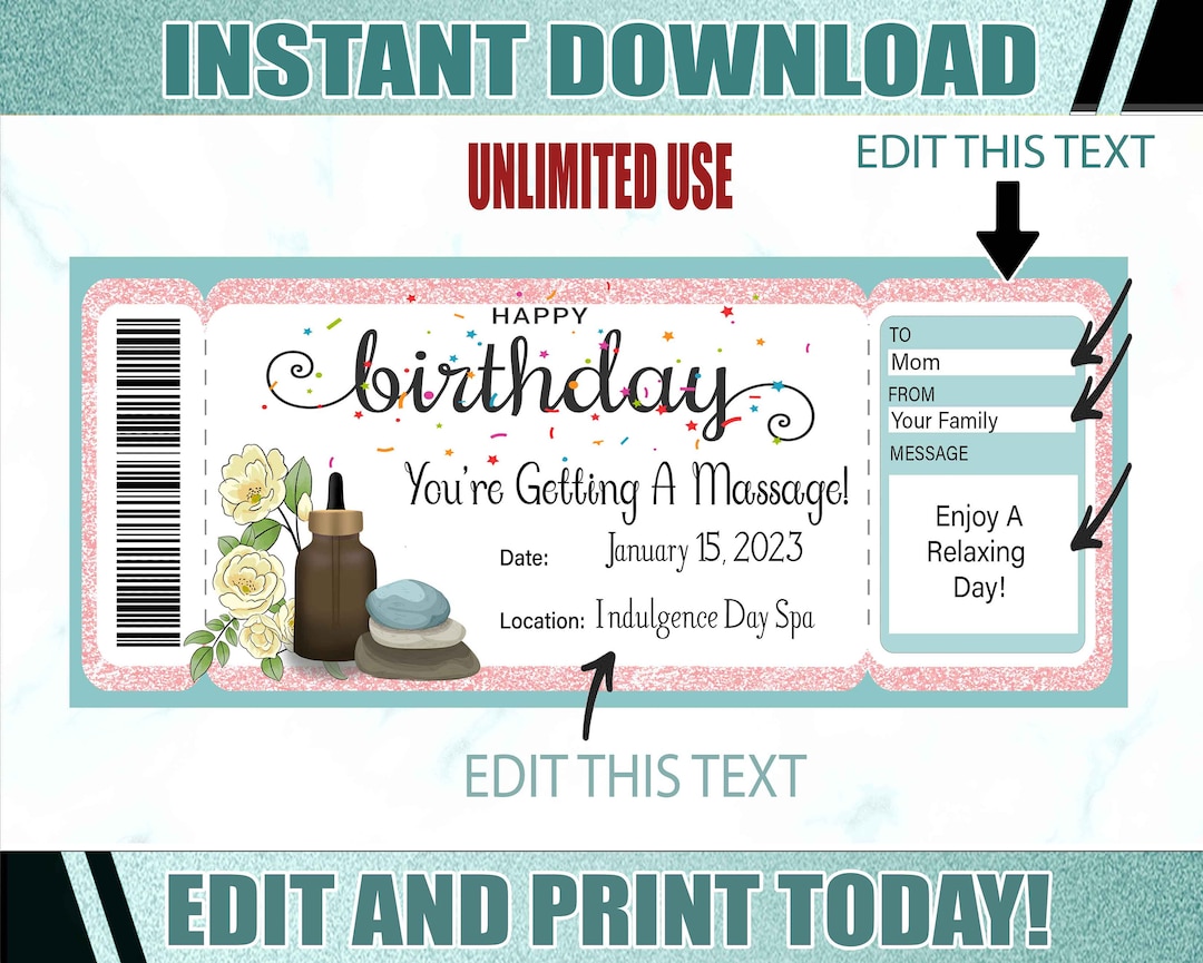 Birthday Massage Ticket Template Massage Gift Certificate Editable