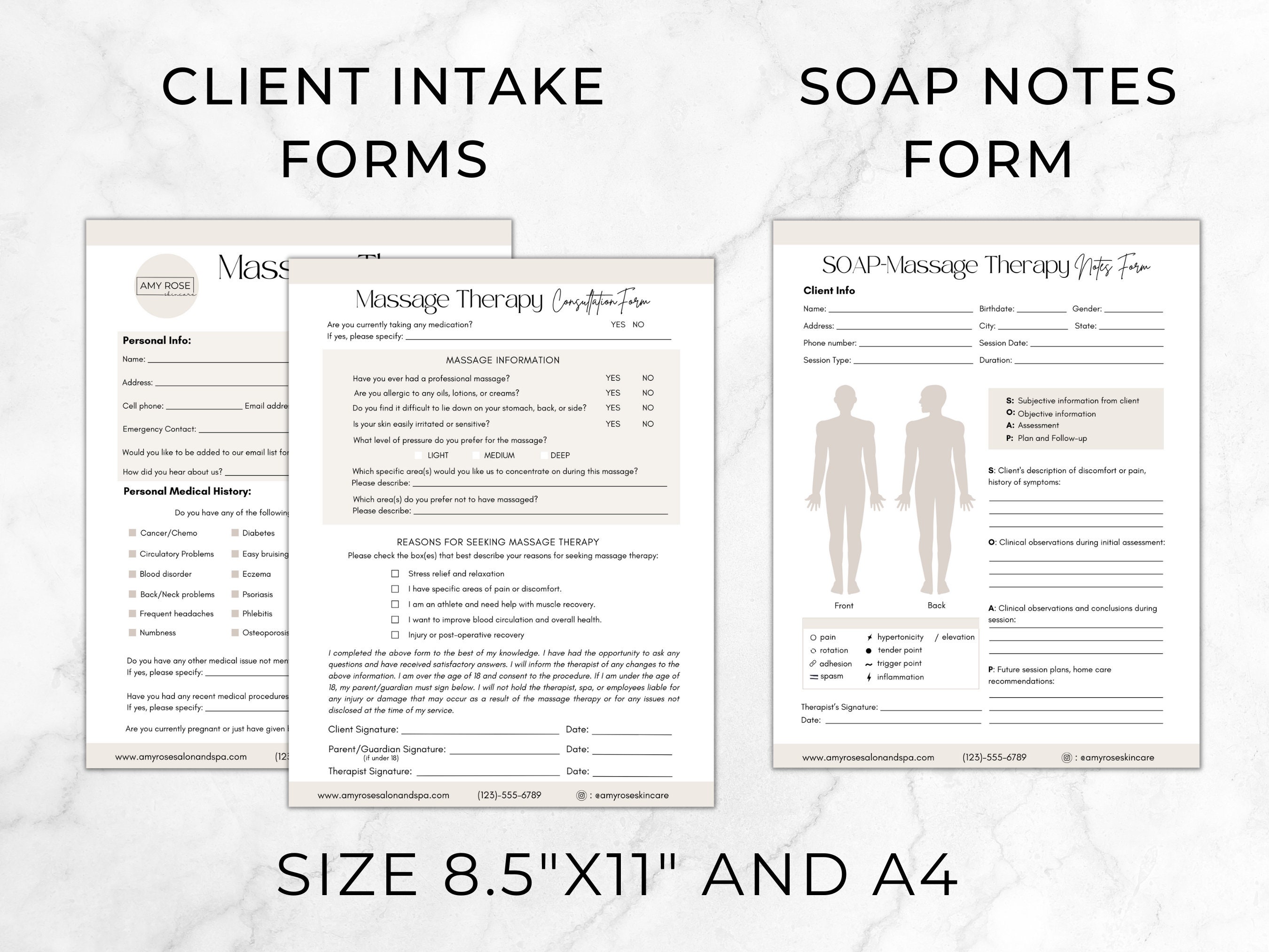 Massage Therapy Consent Forms Massage Waiver and Client Etsy