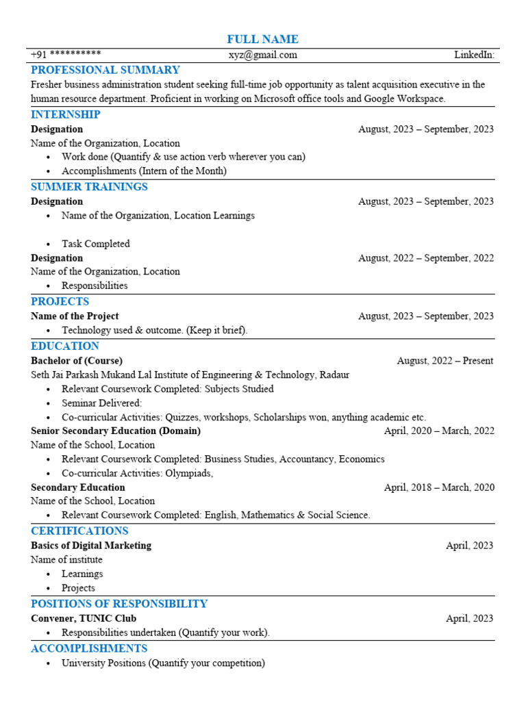 Resume Format For Master Faq
