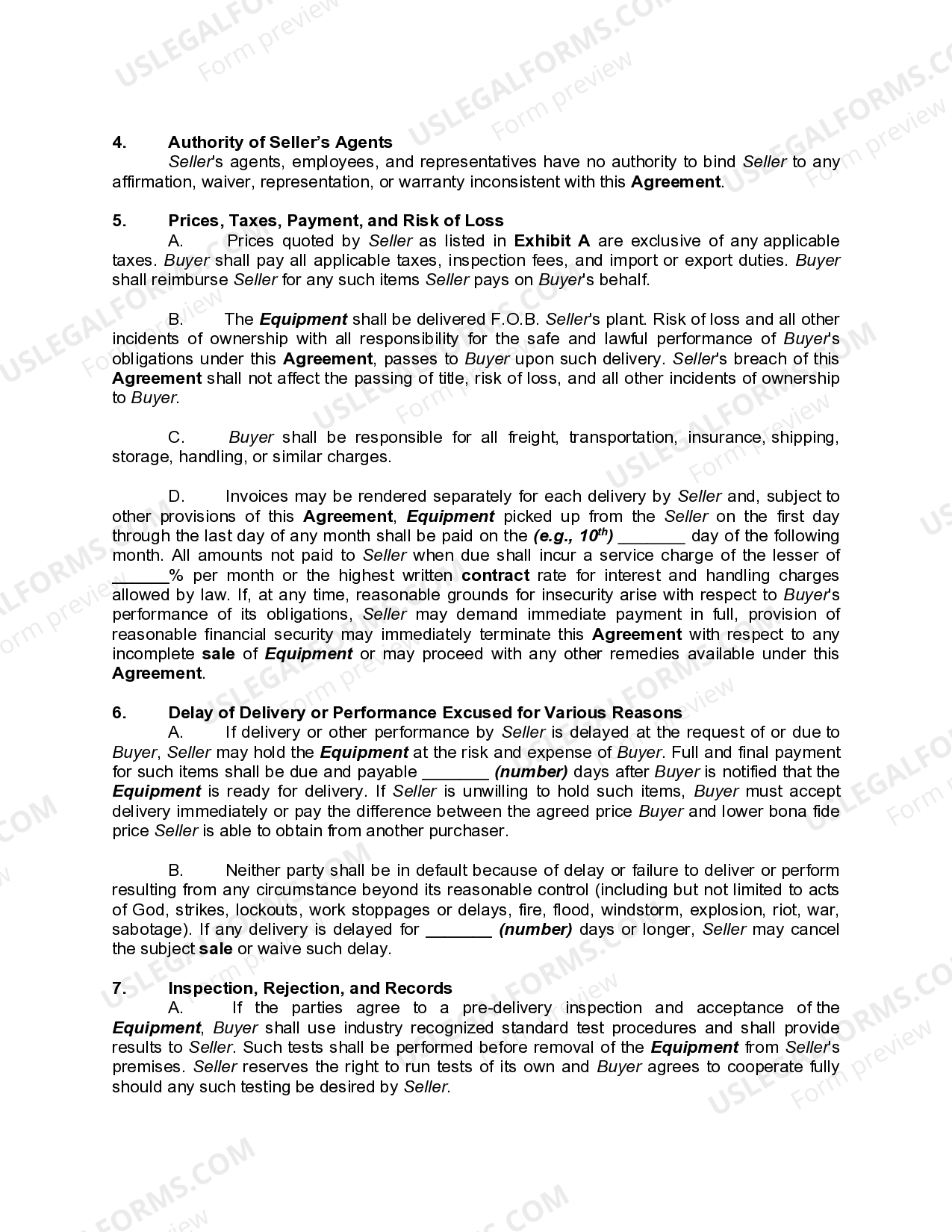 Master Sales Agreement of Equipment Doc Template pdfFiller