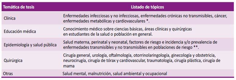Asociación entre la temática de tesis de pregrado y su publicación en
