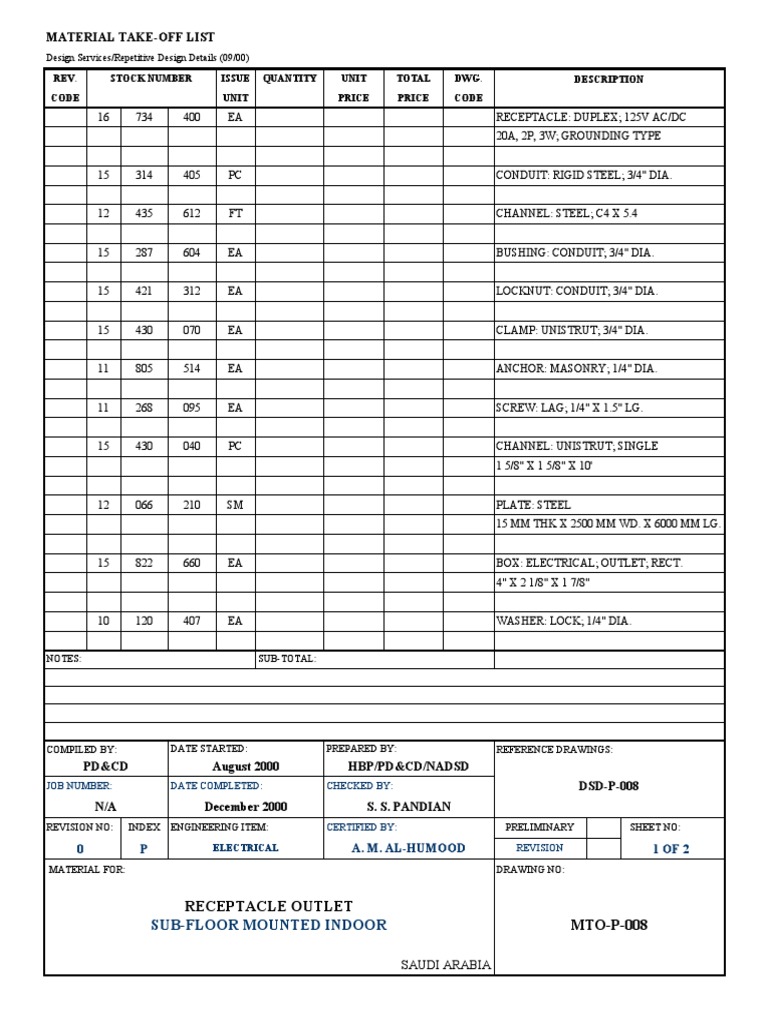 Here are some of the images for Material Take Off List Template that we found in our website database.