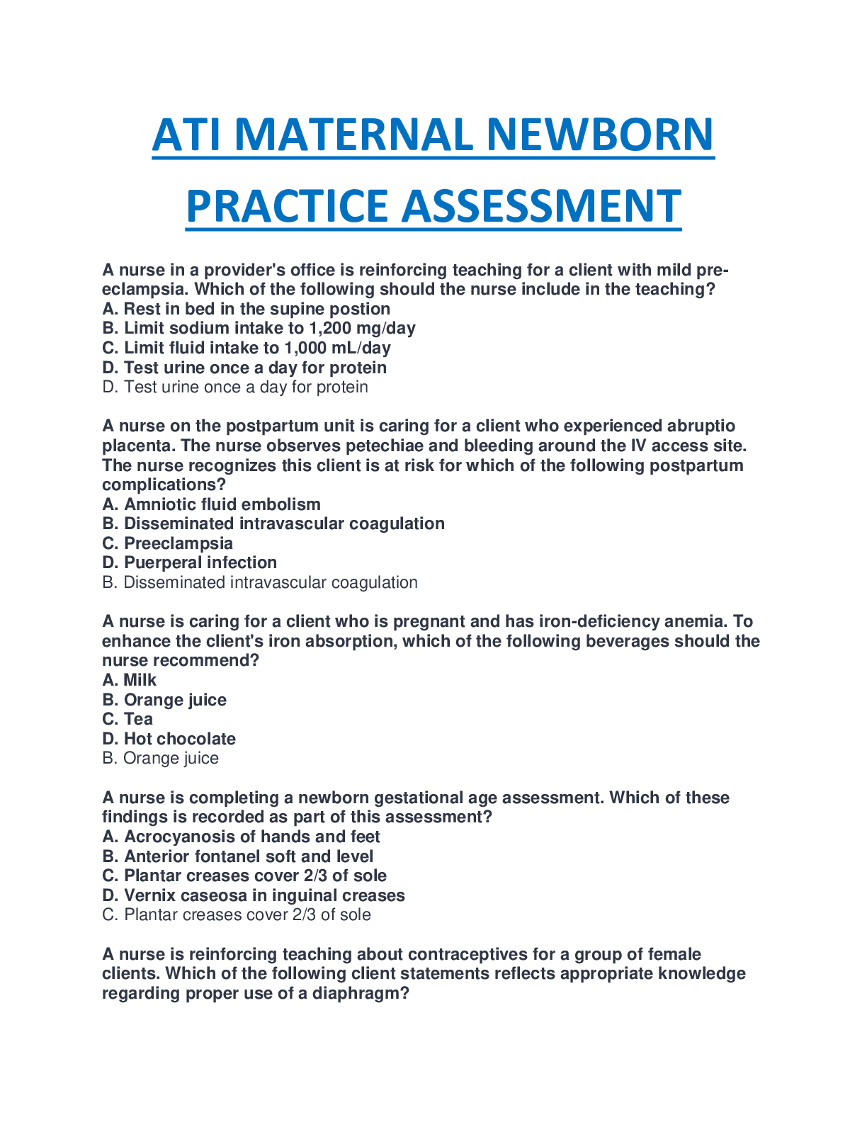 ATI MATERNAL NEWBORN PRACTICE ASSESSMENT TEST Scholarfriends