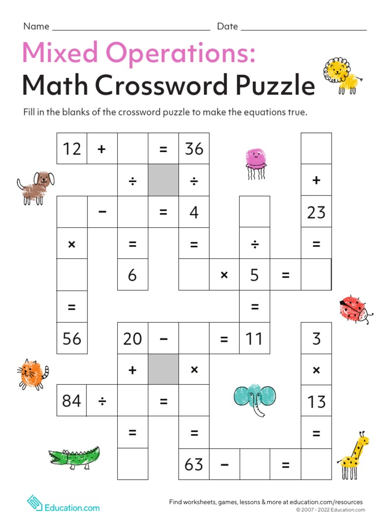 Printable Math Crossword Puzzles Plan Your Year Easily