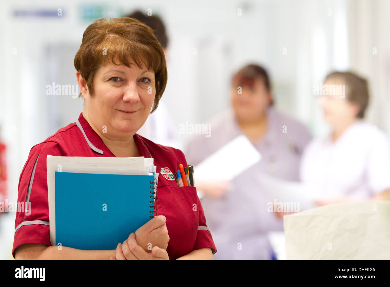 Nurse matron on the ward A matron nurse smiles to camera from a busy