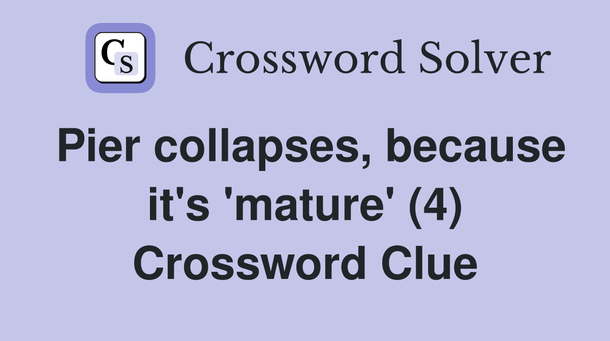 Pier collapses because it s mature (4) Crossword Clue Answers
