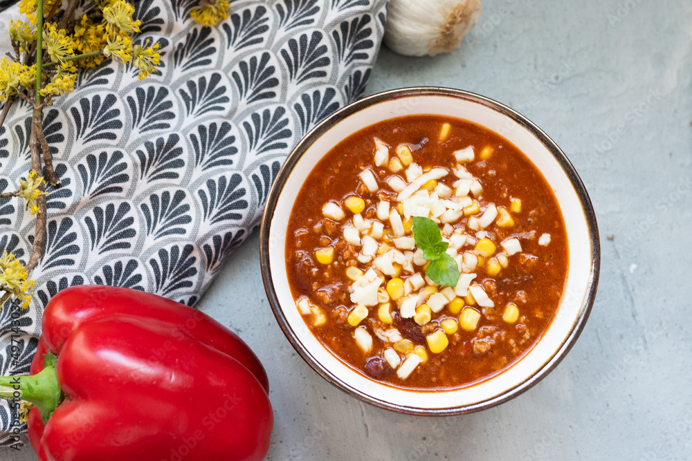 Pyszna zupa meksykańska idealna na rozgrzanie Stock Photo Adobe Stock