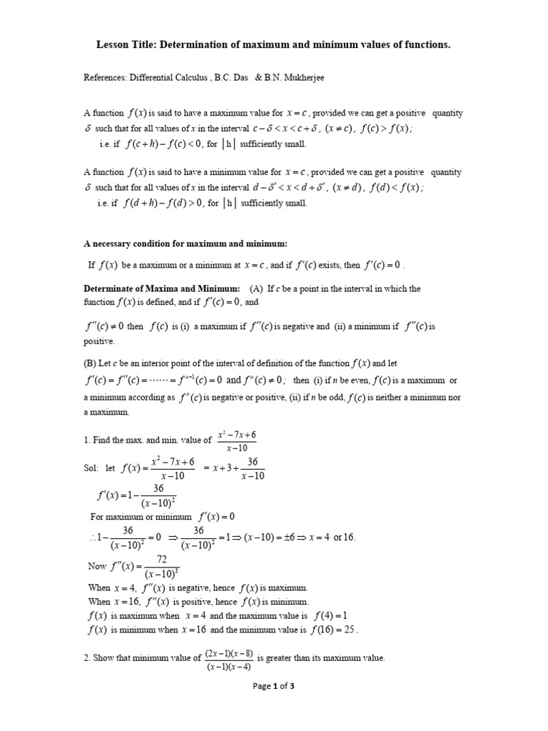 Max and Min PDF Maxima And Minima Functions And Mappings