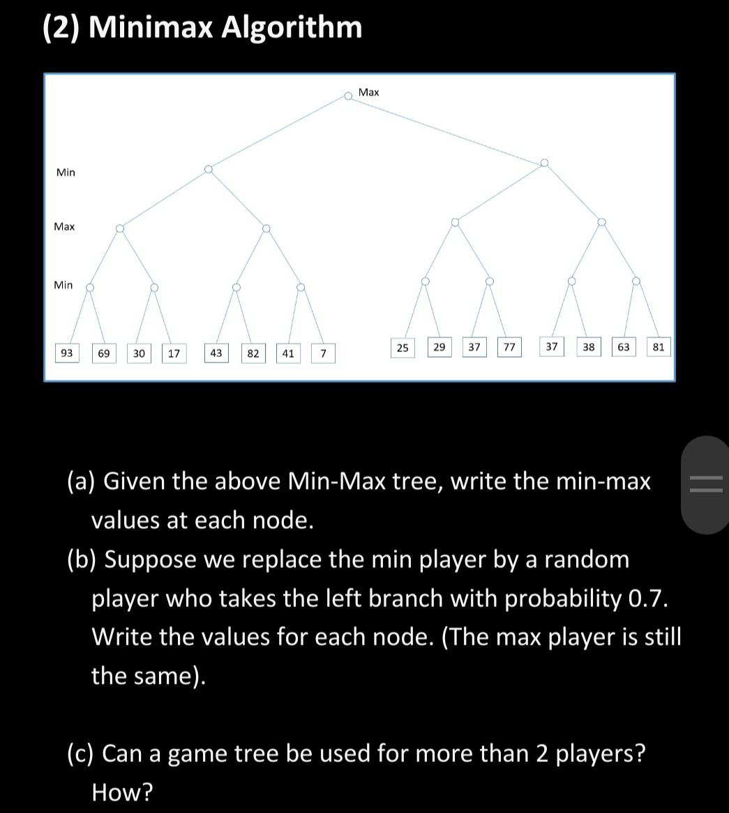 Solved (2) Minimax Algorithm Max Min Max Min 25 29 37 77 37 Chegg com