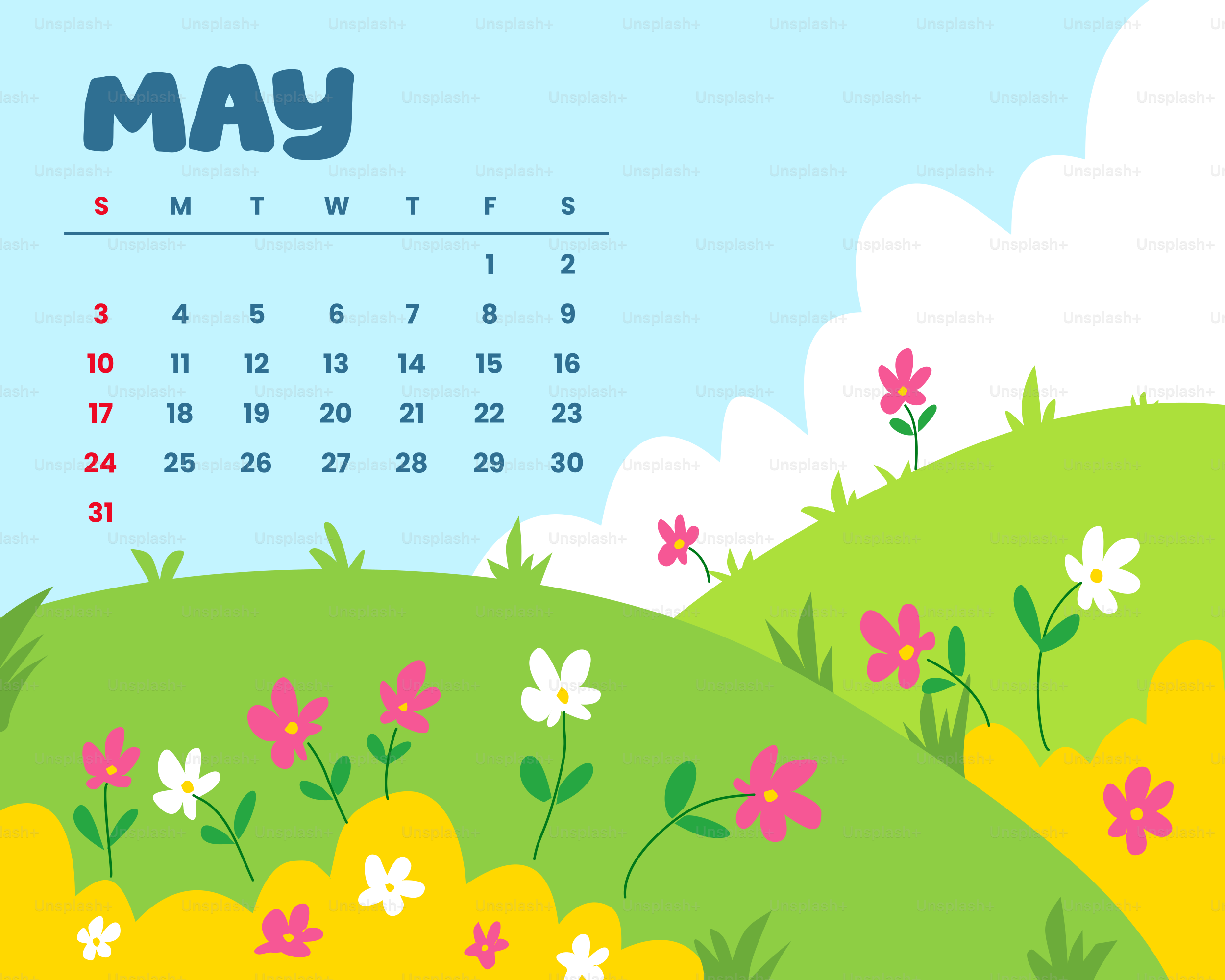 May calendar with flowers and green hills vector Spring Image on Unsplash