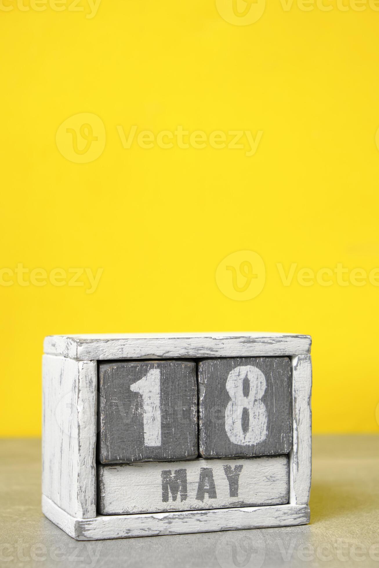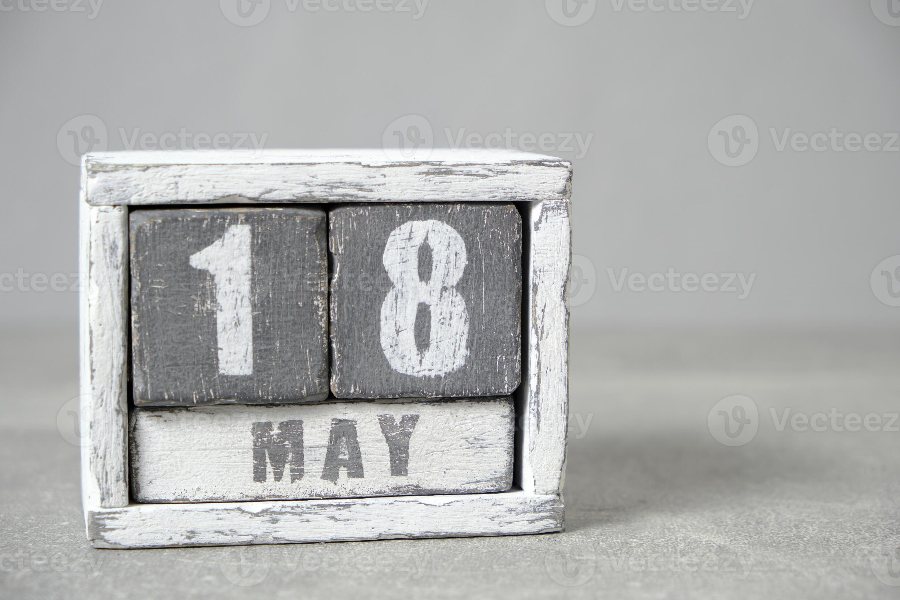 Premium Photo May 18 calendar date text on wooden frame with blurred