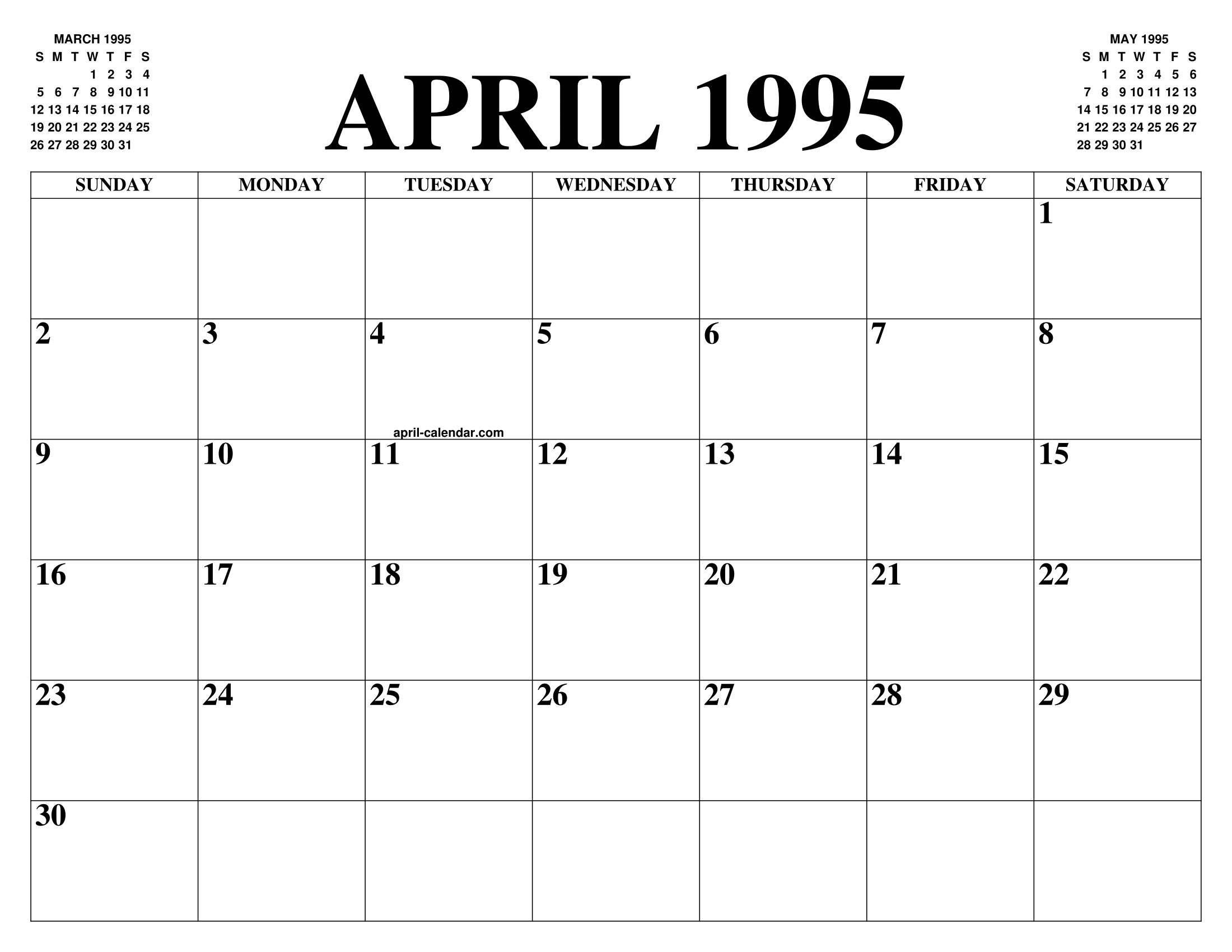 APRIL 1995 CALENDAR OF THE MONTH: FREE PRINTABLE APRIL 41% OFF