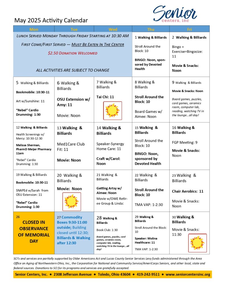 May 2025 Activity Calendar Senior Centers Inc Senior Centers Inc