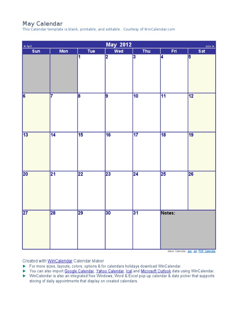 5 Best Images of Printable Calendar May 2012 May June 2012 Calendar