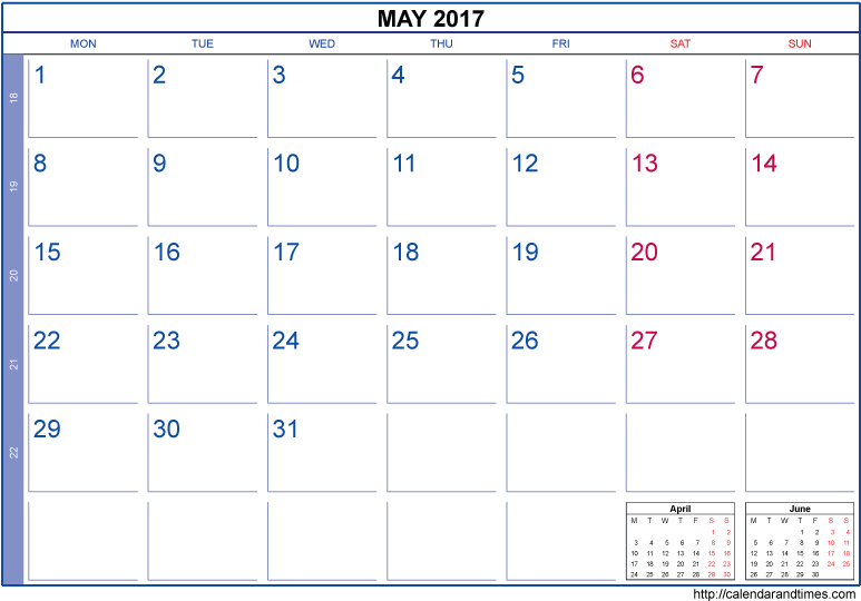 Free May 2017 Calendar Monthly calendar template Calendar 2019