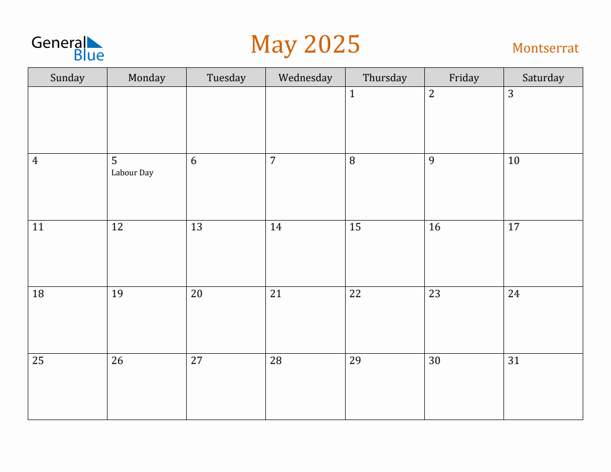 Free May 2025 Montserrat Calendar
