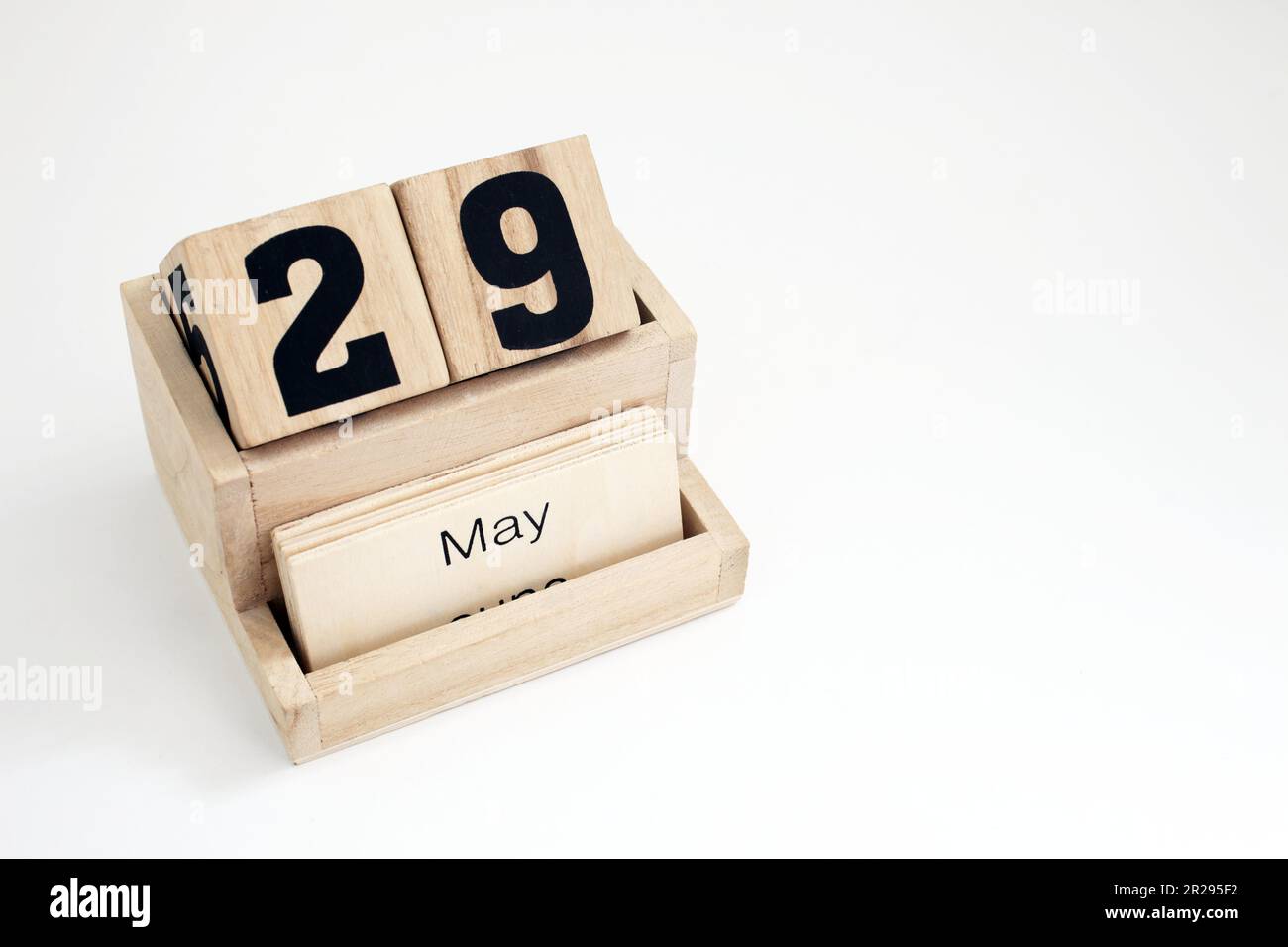 Wooden Calendar Showing the Date of May 29th Day 29 of May Month Stock