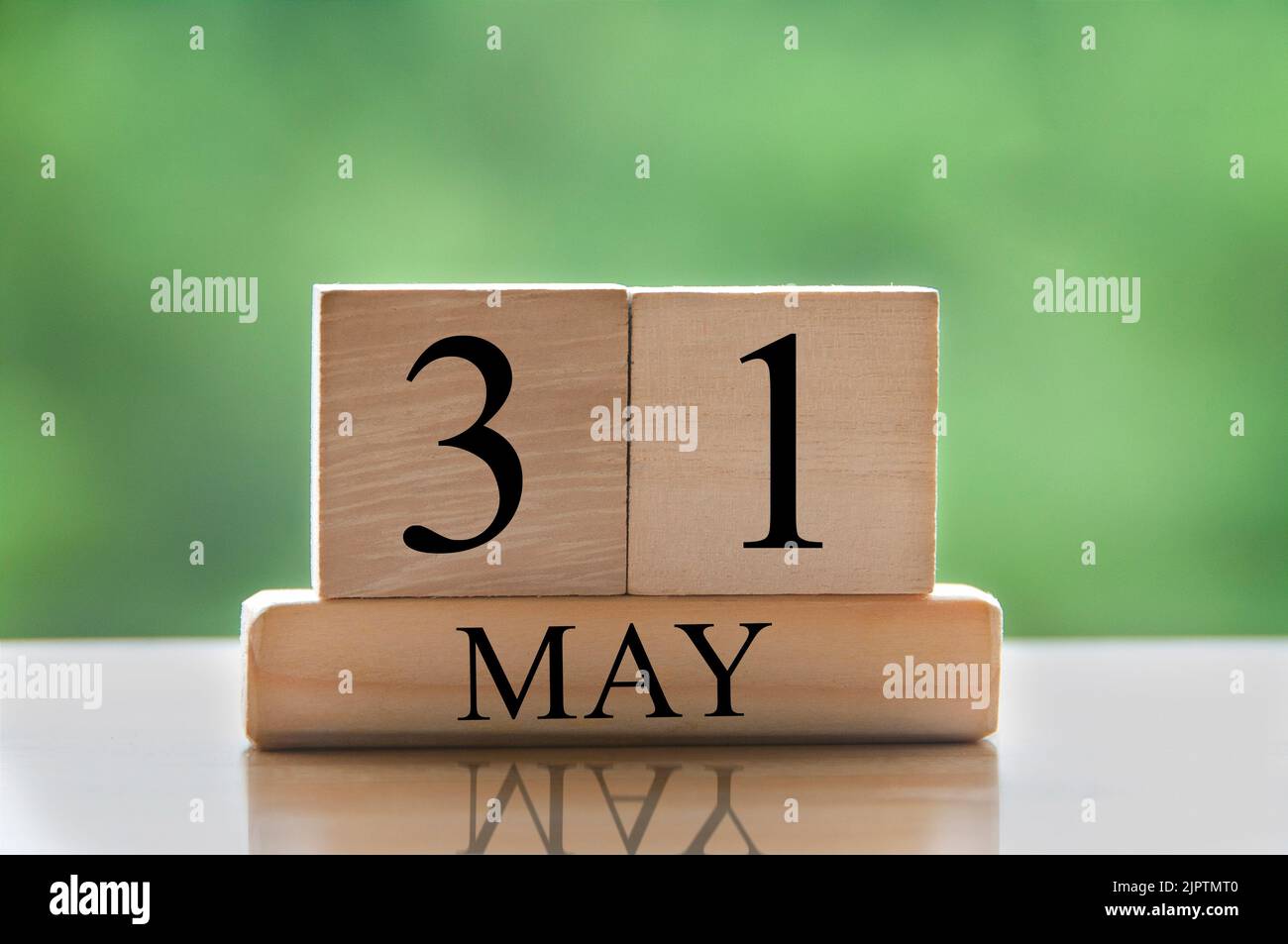 May 31 calendar date text on wooden blocks with blurred nature
