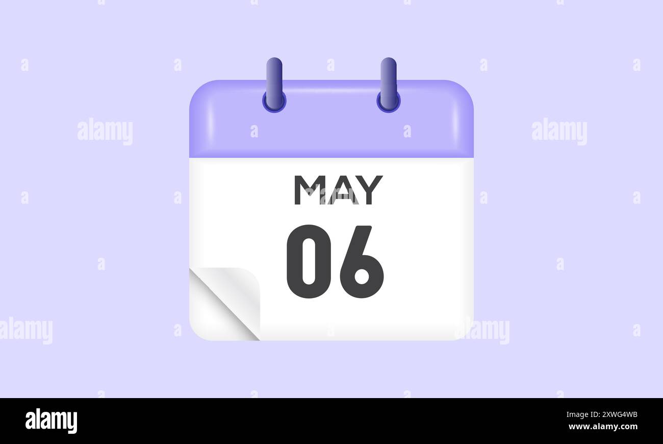 6th May calendar 3D icon 3D May 6 calendar Date Month icon vector