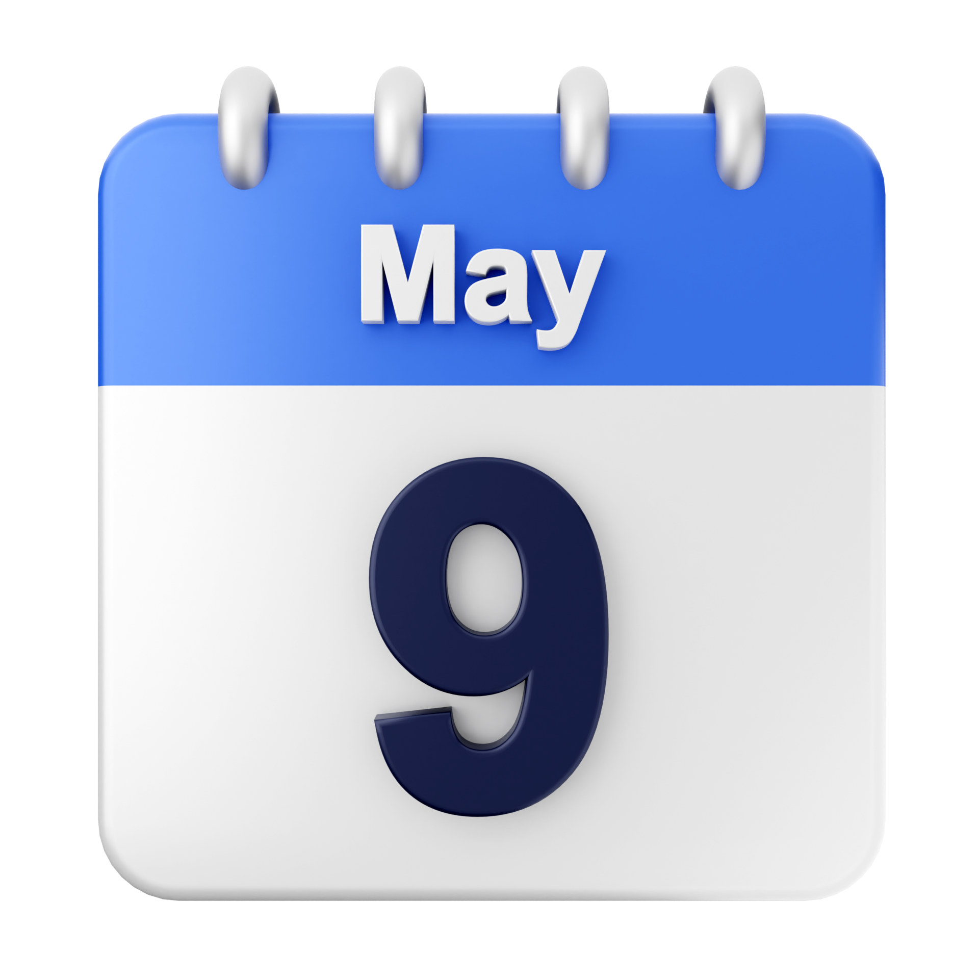 9th May calendar 3D icon 3D May 9 calendar Date Month icon vector