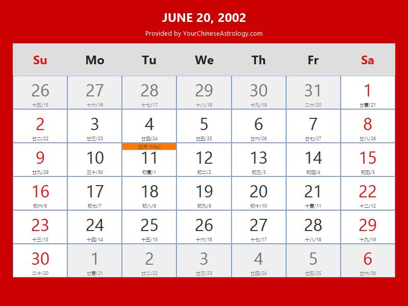 Chinese Calendar Jun 20 2002: Auspicious Things to Do and Hours Bazi