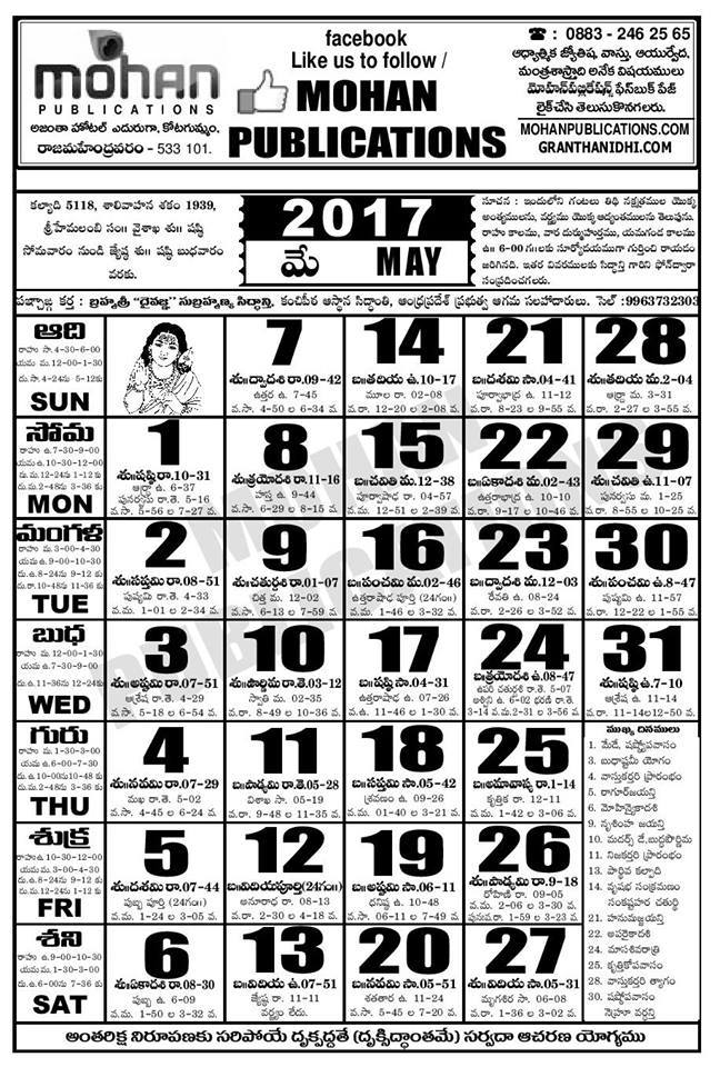 TELUGU WEB WORLD: TELUGU CALENDER 2017 ONE