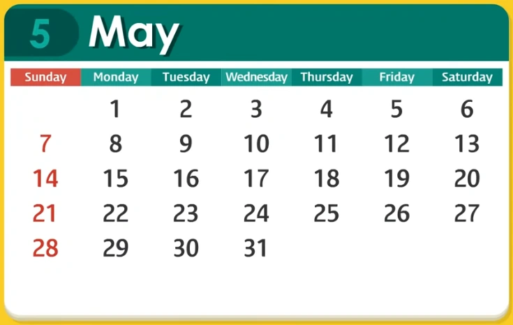 May calendar Vector 16086601 Vector Art at Vecteezy