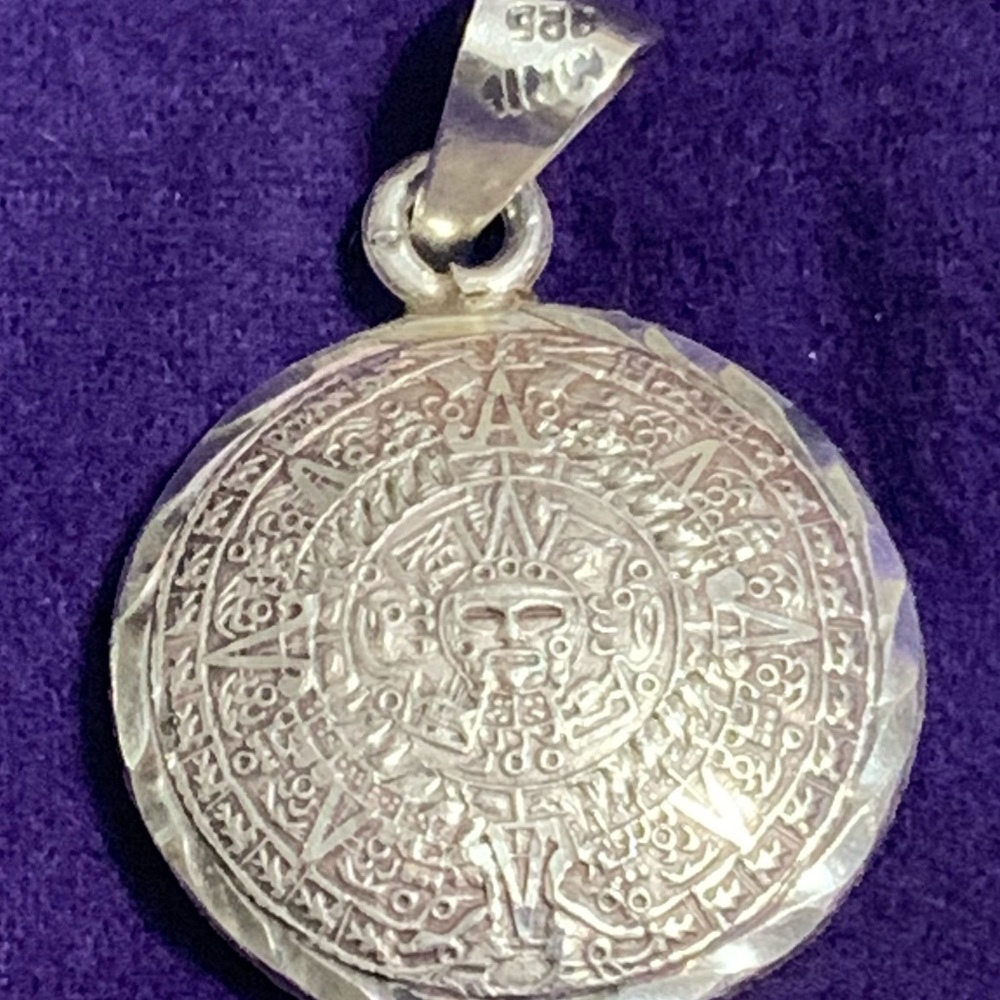 Mexico Vintage Mayan Aztec Sun Calendar Pendant Gem