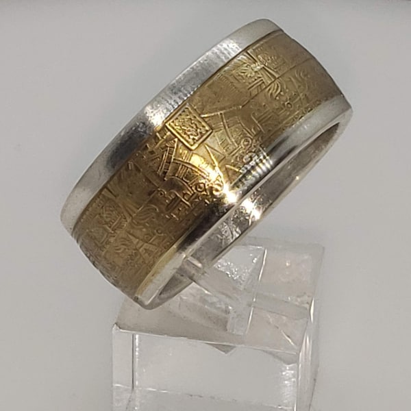 Aztec Mayan Calendar Silver Coin Ring Unique Aztec Sun Calendar Mayan