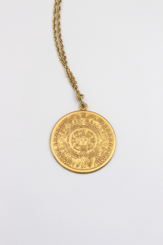 Round Mayan Aztec Calendar Coin Silver 925 Necklace w Gem