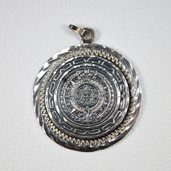 Aztec Mayan Solar Calendar 925 Silver Pendant Made i Gem